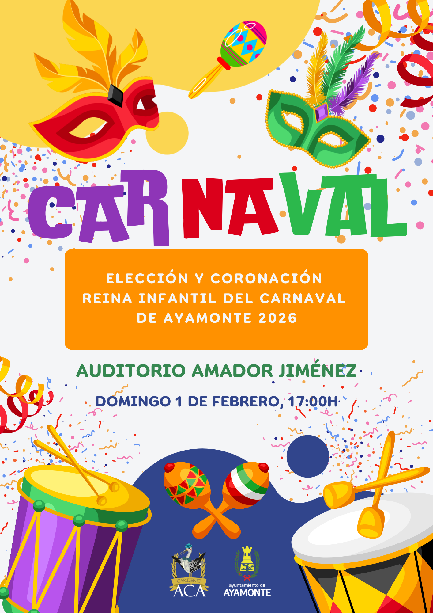 ELECCIÓN Y CORONACIÓN REINA INFANTIL + Añadir Google Calendar Exportación + iCal / Outlook El evento está terminado. Fecha Feb 01 2026 Finalizdo! Hora 5:00 pm - 7:00 pm Localización AYAMONTE AYAMONTE, HUELVA Compartir este evento