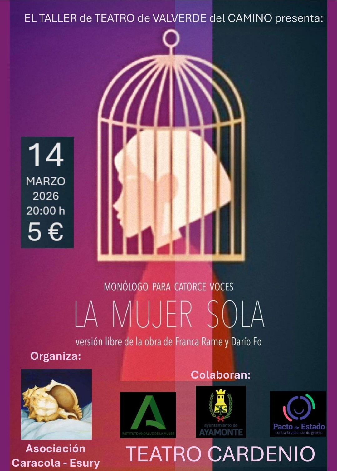 MONÓLOGO PARA CATORCE VOCES LA MUJER SOLA + Añadir Google Calendar Exportación + iCal / Outlook 00 días 00 horas 00 minutos 00 segundos Fecha Mar 14 2026 Hora 8:00 pm - 10:00 pm Localización Teatro Cardenio Calle Enrique Villegas Vélez, S/N, 21400 Ayamonte, Huelva Teléfono 959 32 18 71 Compartir este evento