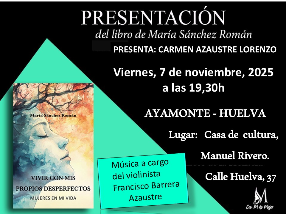 PRESENTACIÓN LIBRO VIVIR CON MIS PROPIOS DESPERFECTOS. MARÍA SÁNCHEZ ROMÁN + Añadir Google Calendar Exportación + iCal / Outlook 00 días 00 horas 00 minutos 00 segundos Fecha Nov 07 2025 Hora 7:30 pm - 9:00 pm Localización Casa Grande C. Huelva, 37, 21400 Ayamonte, Huelva Web https://www.juntadeandalucia.es/cultura/agendaculturaldeandalucia/evento/la-casa-grande-ayamonte Teléfono 959 32 18 71 Compartir este evento