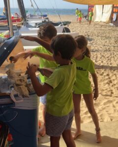 Se llevó a cabo esta actividad de educación ambiental dirigida a niños en edad escolar, centrada en la limpieza de entornos marinos. Se utilizó un contenedor decorativo en forma de ballena como símbolo de la iniciativa, donde se depositaron plásticos, latas y otros residuos recogidos. Los monitores enseñaron a los participantes a identificar, recoger de forma segura y clasificar correctamente los residuos, fomentando la conciencia ambiental de manera práctica y divertida.